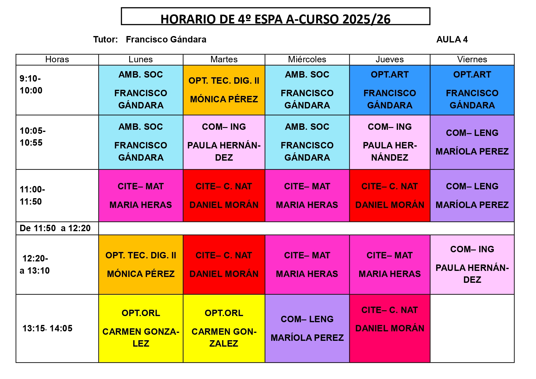 Listado y Horarios Curso 2025-2026 » HORARIO 4º ESPA