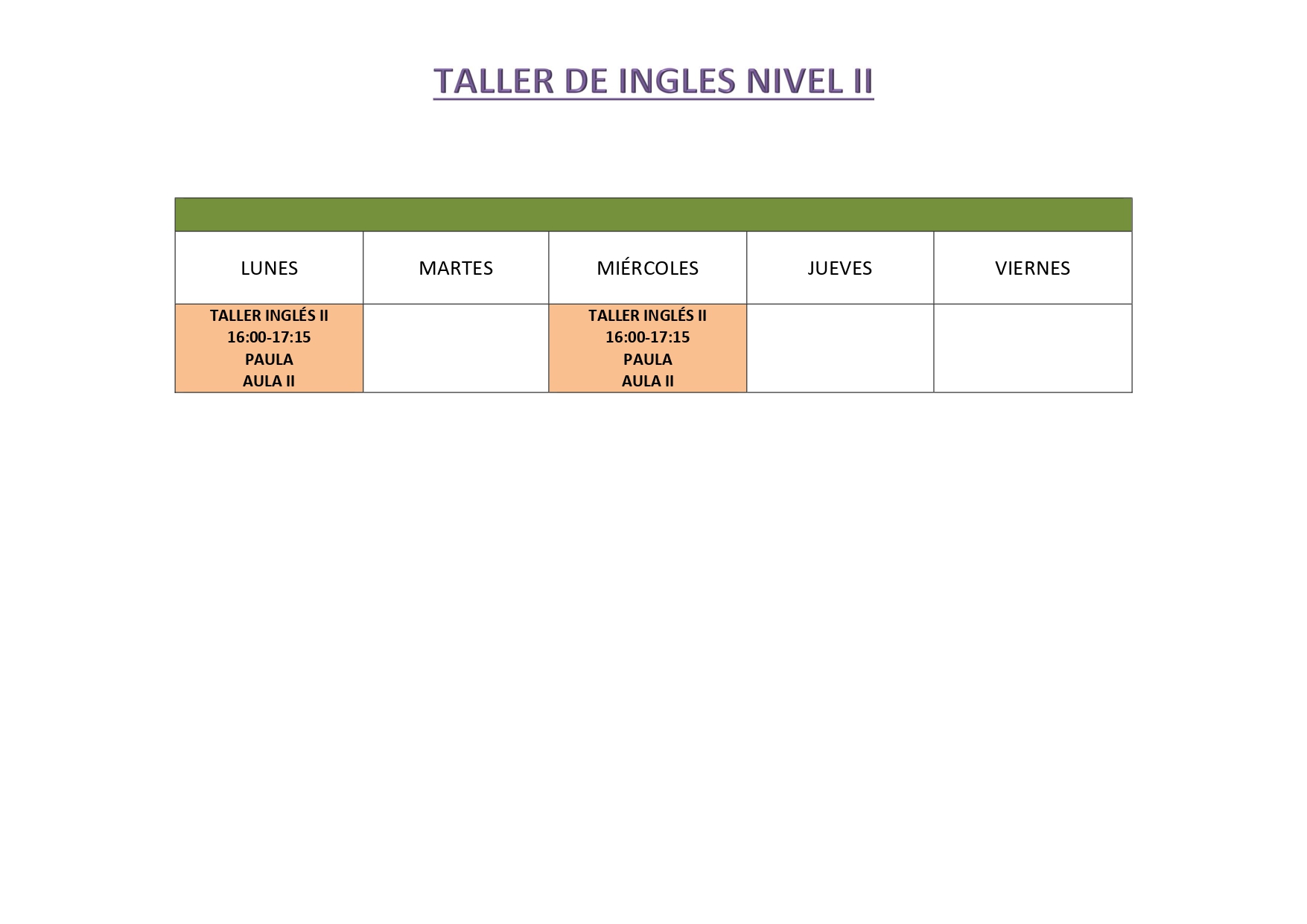 Listado y Horarios Curso 2025-2026 » HORARIO TALLER INGLÉS NIVEL II
