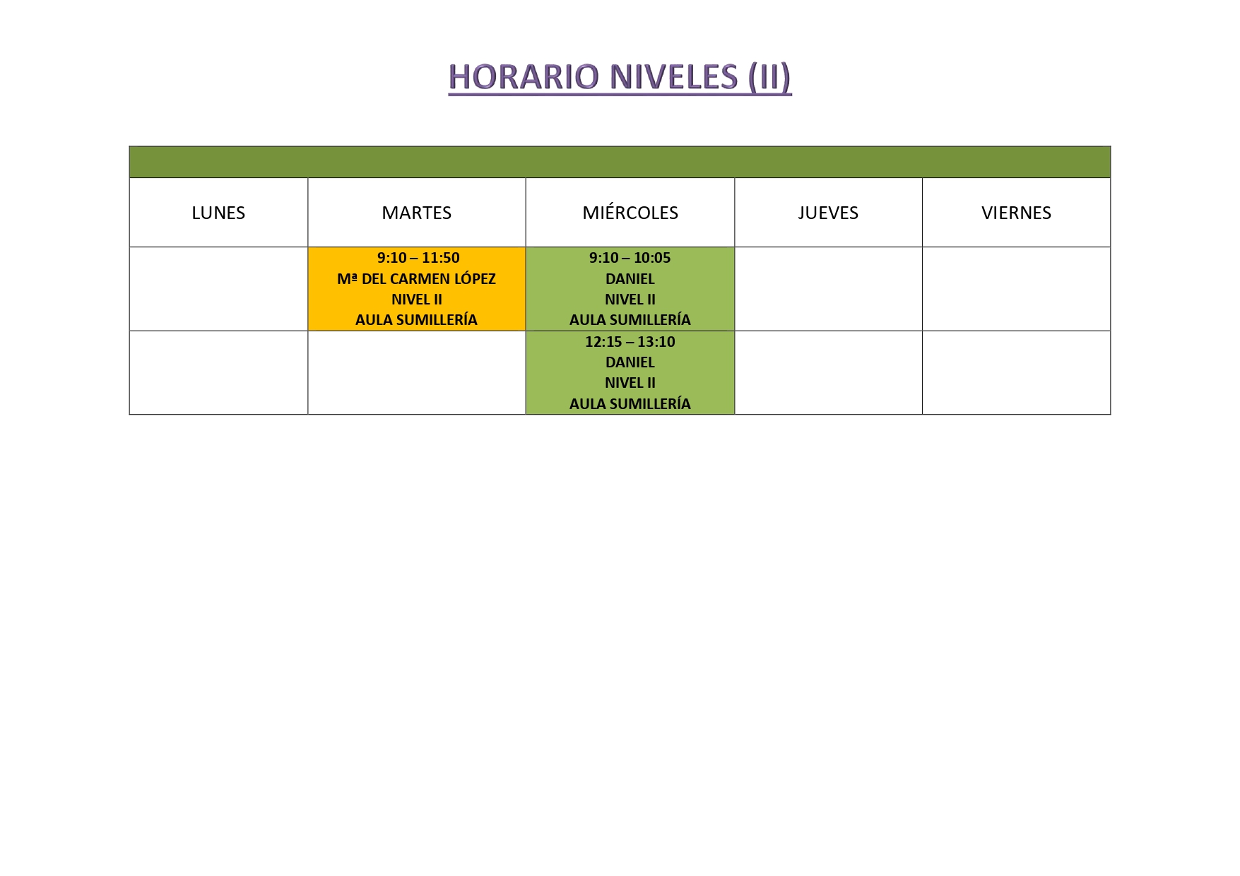 HORARIO DE NIVELES I y II